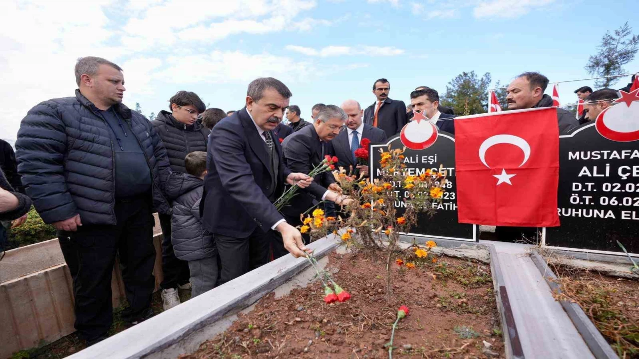 Milli Eğitim Bakanı Yusuf Tekin, depremlerin yıl dönümünde Osmaniye’deki Asri Mezarlığı’nda düzenlenen anma programına katıldı.