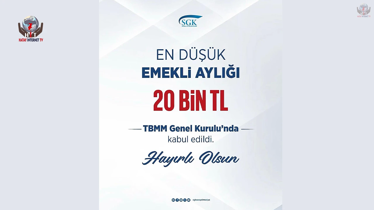 SGK Hatay İl Müdürü Hamit Bal, Türkiye Büyük Millet Meclisi Genel Kurulu’nda kabul edilen düzenleme ile en düşük emekli aylığının 20 bin TL’ye yükseltildiğini açıkladı.
