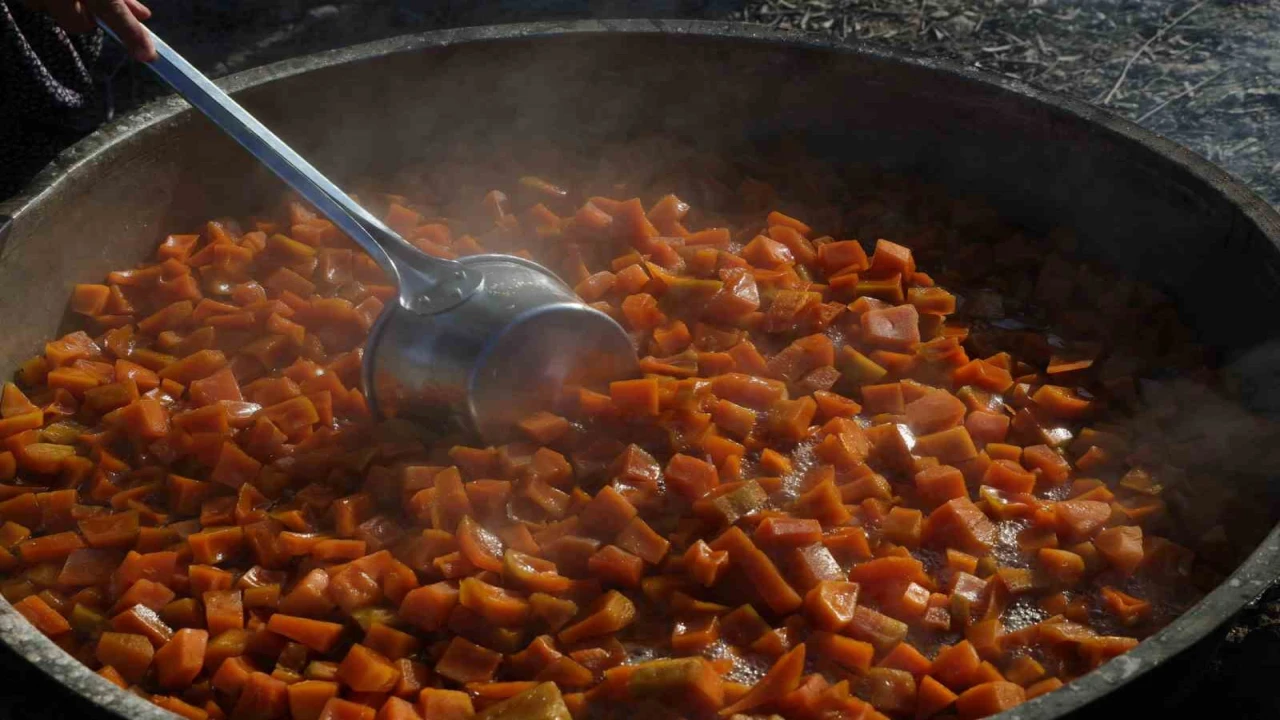 Kışın Adana ve Hatay bölgesinde sofraların vazgeçilmezi olan kabak tatlısı için Kozan’da kadınlar imece usulü hazırladıkları bal kabakları için kazan başında mesai yaptı. Bal kabaklarını bir gün önceden küçük küçük kesen kadınlar ardından çıtır olması için bir gün söndürülmüş kireçte bekletti. Kadınlar odun ateşinde kazanda kabakları yaklaşık 5 saat kaynattıktan sonra sofralara muhteşem bir tatlı sunuyor.