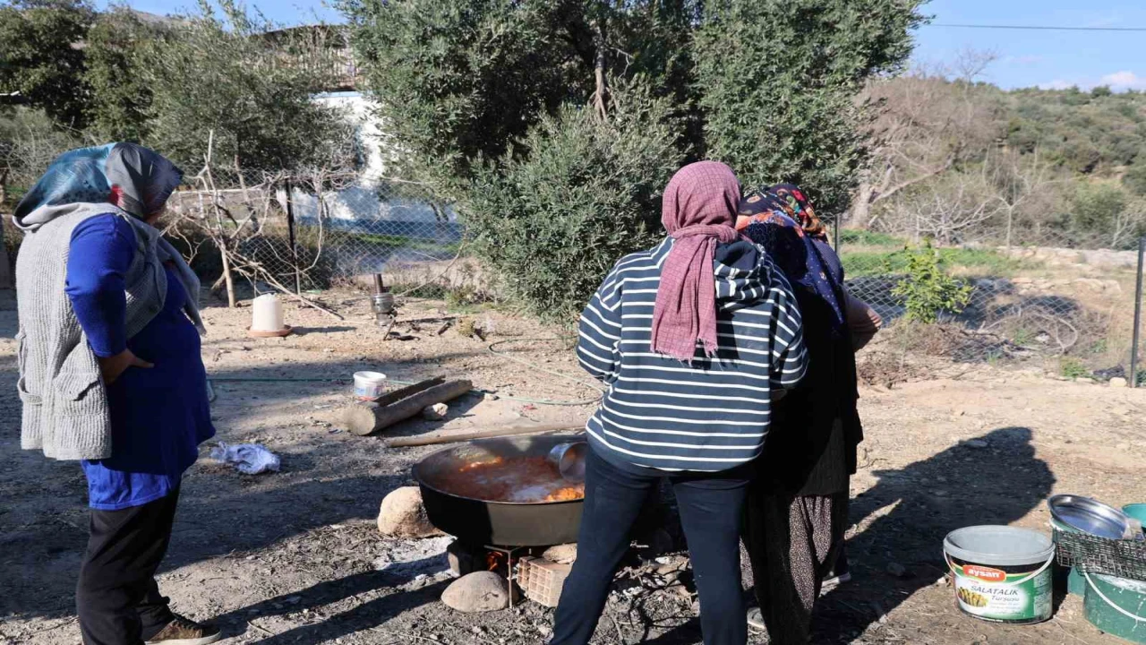 ADANA'NIN KOZAN İLÇESİNDE KIŞ ORTASINDA MEVSİM NORMALLERİNİN ÜZERİNDE SEYREDEN SICAK HAVA İLE BİRLİKTE BAHÇELERDE KADINLAR İMECE USULÜ KAZAN BAŞINDA MESAİ YAPTI.