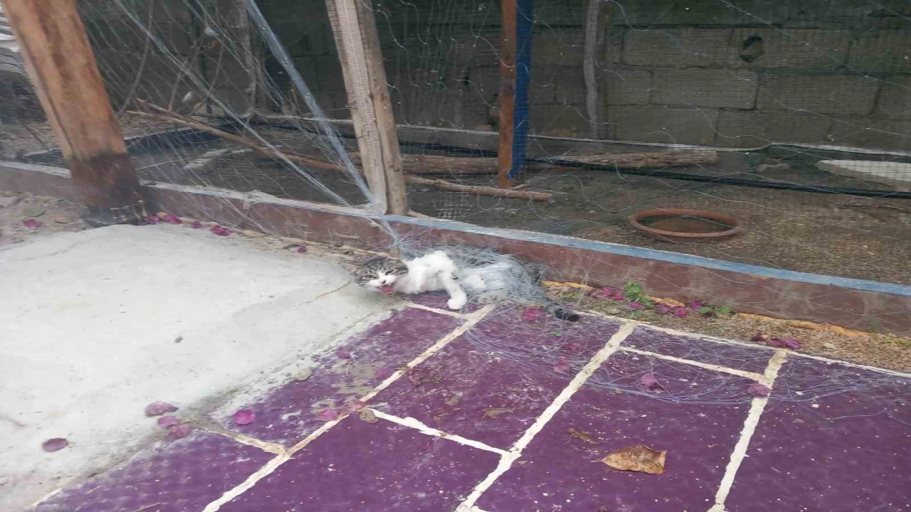 Kısa sürede bölgeye gelen ekipler, müdahalenin ardından balık ağına takılan kediyi kurtardı.