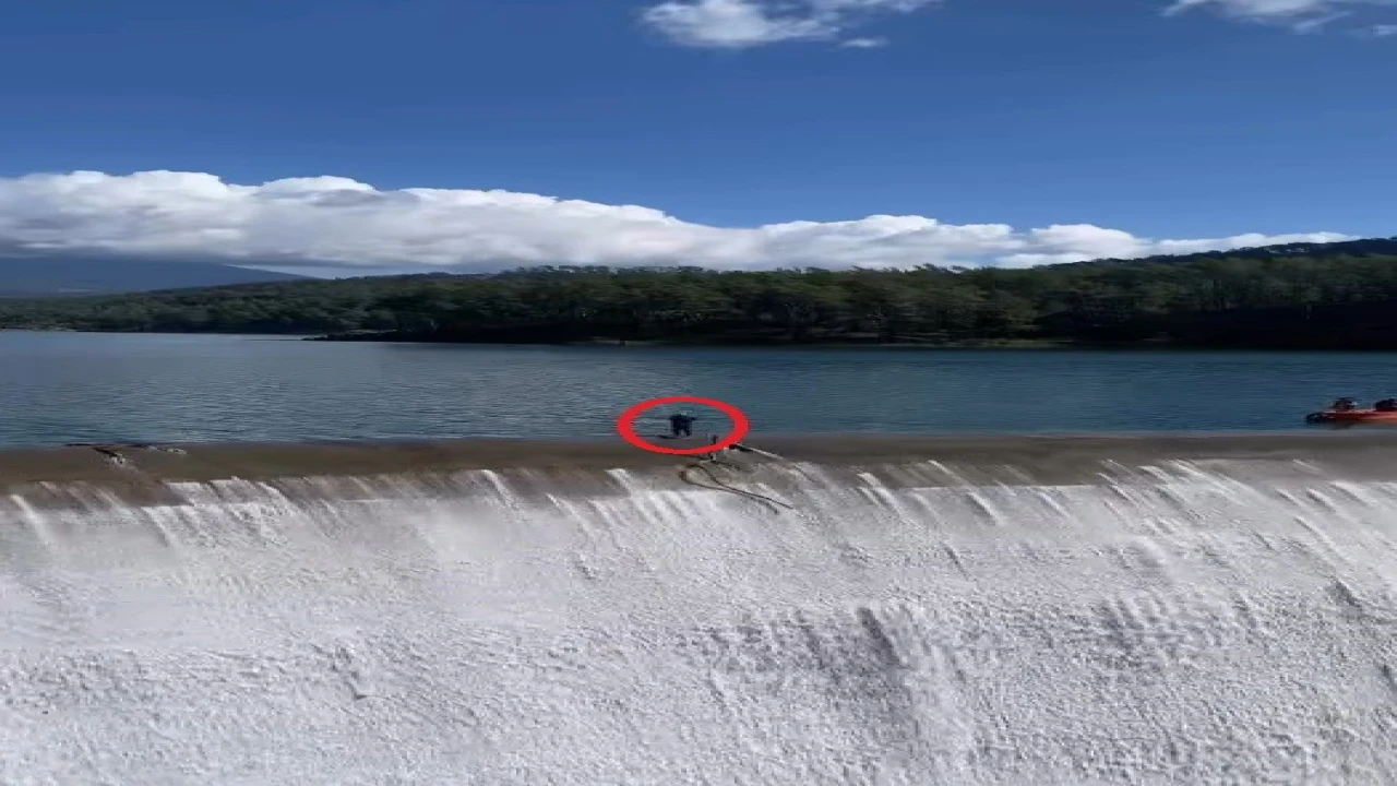 Antalya’nın Kumluca ilçesinde Alakır Barajı’nda alabalık üreten Nuri Yurtseven, dolu savakta takılan çalı ve ağaçları suyun döküldüğü alana önce tekne ile ardından yürüyerek gidip temizledi. Cep telefonuna yansıyan görüntülerde tehlike ile burun buruna gelen Yurtseven, "Öyle tehlikeli bir durum yok. Asayiş berkemal" dedi.