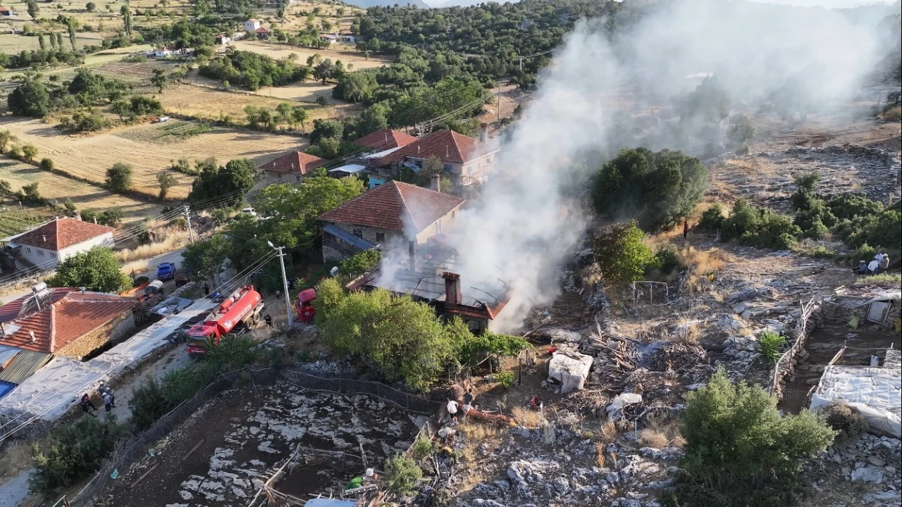BURDUR’UN BUCAK İLÇESİNDE BANYO SOBASINDAN ÇIKAN YANGINDA 2 KATLI TOPRAK EV TAMAMEN YANARAK KULLANILAMAZ HALE GELDİ.