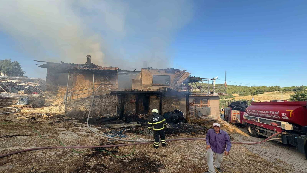 Burdur’un Bucak ilçesinde banyo sobasından çıkan yangında 2 katlı toprak ev tamamen yanarak kullanılamaz hale geldi.