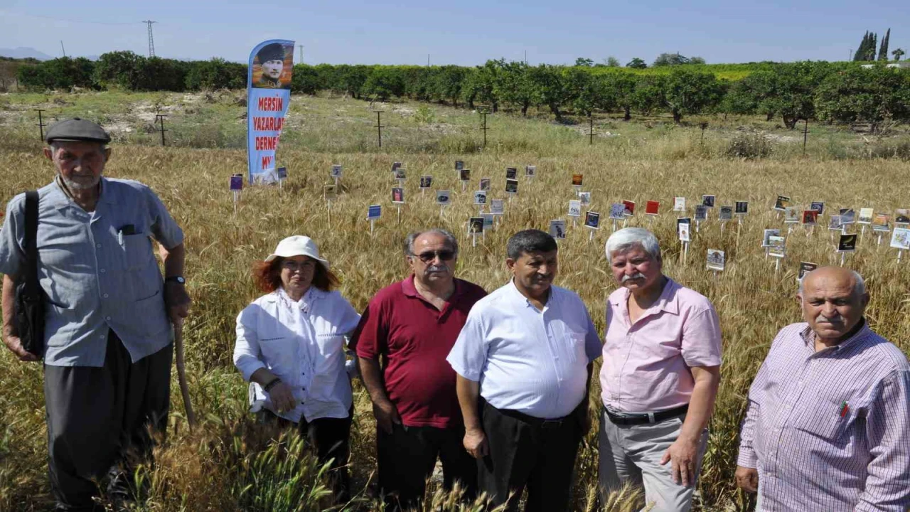 Mersin Yazarlar Derneği üyeleri, kitap okuma alışkanlığına dikkat çekmek ve farkındalık oluşturmak amacıyla buğday tarlasındaki başaklara kitap astı.