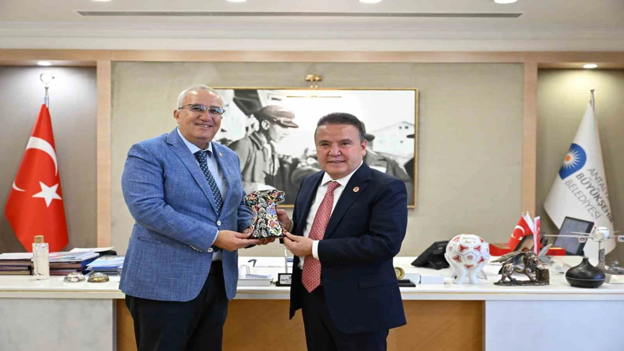 ANTALYA BÜYÜKŞEHİR BELEDİYE BAŞKANI VE CİTTASLOW TÜRKİYE KOORDİNATÖRÜ MUHİTTİN BÖCEK, "SAKİN ŞEHİR" (CİTTASLOW) ÜNVANINI ALMAYA HAK KAZANAN DENİZLİ ÇAMELİ İLÇESİ’NİN BELEDİYE BAŞKANI CENGİZ ARSLAN’I KABUL ETTİ.