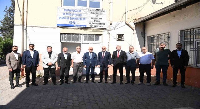 MARANGOZLAR ODASI, ATTARLAR ODASI VE TOPTANCILAR SİTESİ’Nİ ZİYARET EDEREK ODA BAŞKANLARI VE ESNAFLARLA BİR ARAYA GELEN KAHRAMANMARAŞ BÜYÜKŞEHİR BELEDİYE BAŞKANI FIRAT GÖRGEL, “ESNAFLARIMIZIN DAHA İYİ ŞARTLARDA FAALİYETLERİNİ SÜRDÜREBİLMELERİ NOKTASINDA ELİMİZDEN GELEN GAYRETİ GÖSTERİYORUZ. İNŞALLAH HEP BİRLİKTE ŞEHRİMİZİ ÇOK DAHA İYİ BİR ŞEKİLDE TEKRAR AYAĞA KALDIRACAK VE 6 ŞUBAT ÖNCESİNDEN ÇOK DAHA İLERİ BİR NOKTAYA TAŞIYACAĞIZ” DEDİ.