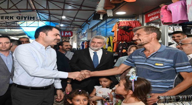 KAHRAMANMARAŞ BÜYÜKŞEHİR BELEDİYE BAŞKANI FIRAT GÖRGEL, ÇEVRE, ŞEHİRCİLİK VE İKLİM DEĞİŞİKLİĞİ BAKANI MURAT KURUM İLE DEREPAZARI, KAPALI ÇARŞI VE DEMİRCİLER ÇARŞISI’NI ZİYARET EDEREK ESNAF VE VATANDAŞLARLA BİR ARAYA GELDİ