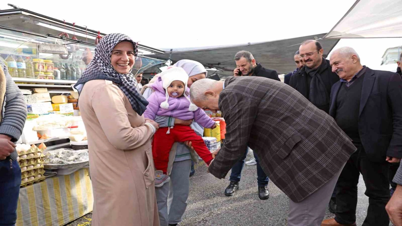 Pazarcı esnaflarının stantlarını tek tek ziyaret ederek hayırlı işler ve bereketli kazançlar dileyen Belediye Başkanı Osman Tarık Özçelik, tezgahlardaki fiyatları da inceledi. Ayrıca Pazar alışverişini yapan halkla da sohbet eden Başkan Özçelik, talepleri dikkatle dinleyip notlar aldı.