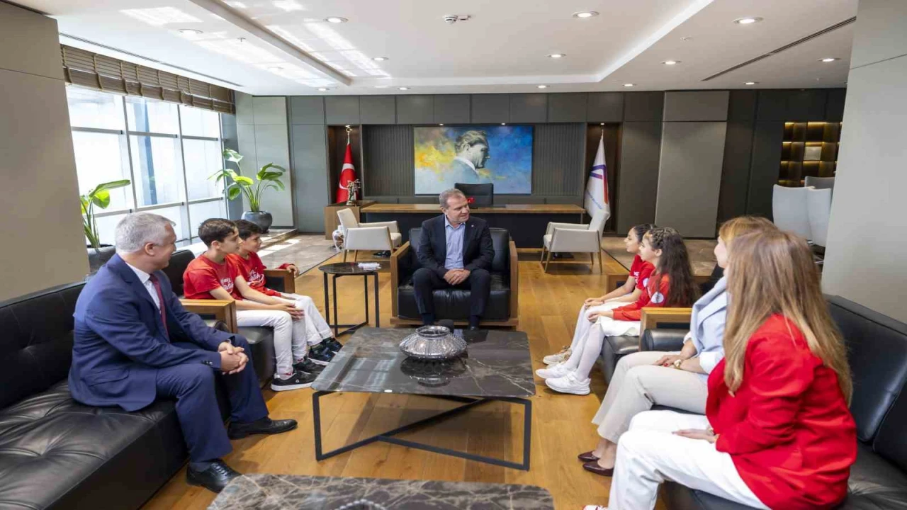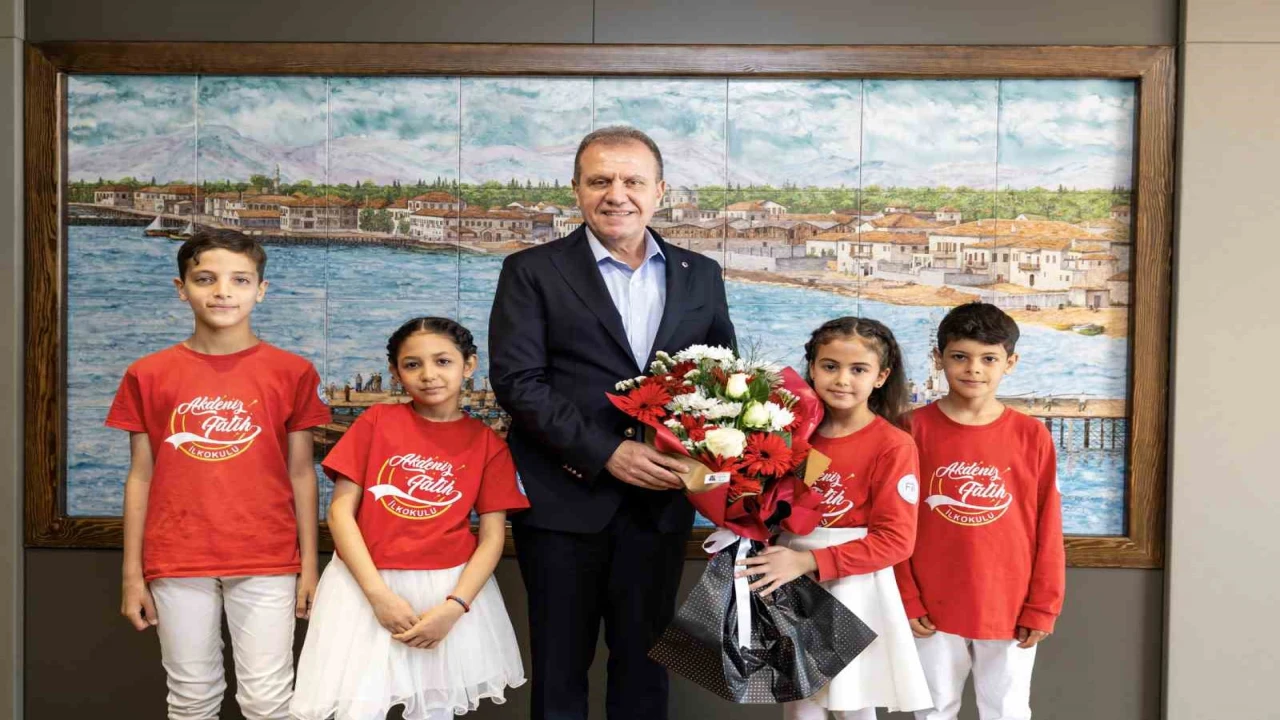 Öğrenciler, 23 Nisan Ulusal Egemenlik ve Çocuk Bayramı kapsamında Başkan Vahap Seçer’i ziyaret etti. Bayram sevincini paylaşmak üzere Seçer’i ziyaret eden öğrenciler anlamlı bir deneyim yaşadı. Misafirlerini karşılayan Seçer, 23 Nisan Ulusal Egemenlik ve Çocuk Bayramı kutlamaları kapsamında koltuğunu çocuklara devretti. Makam koltuğuna oturan öğrenciler, kente ve çocuklara dair gerçekleşmesini istedikleri talepleri Seçer’e iletti. Çocukların taleplerini dinleyen Seçer, 23 Nisan’ın çocuklara armağan edilmesinin ne kadar anlamlı olduğunu vurguladı. Ziyarette, Akdeniz İlçe Milli Eğitim Müdürü Saim Demir, Akdeniz Fatih İlkokulu Müdürü Dilek Göl ve öğrenciler İlayda Özyar, Yasin Çiftçi, Yasmin Almansour, Çınar Yardımcı ve öğretmenleri Gamze Berk yer aldı.