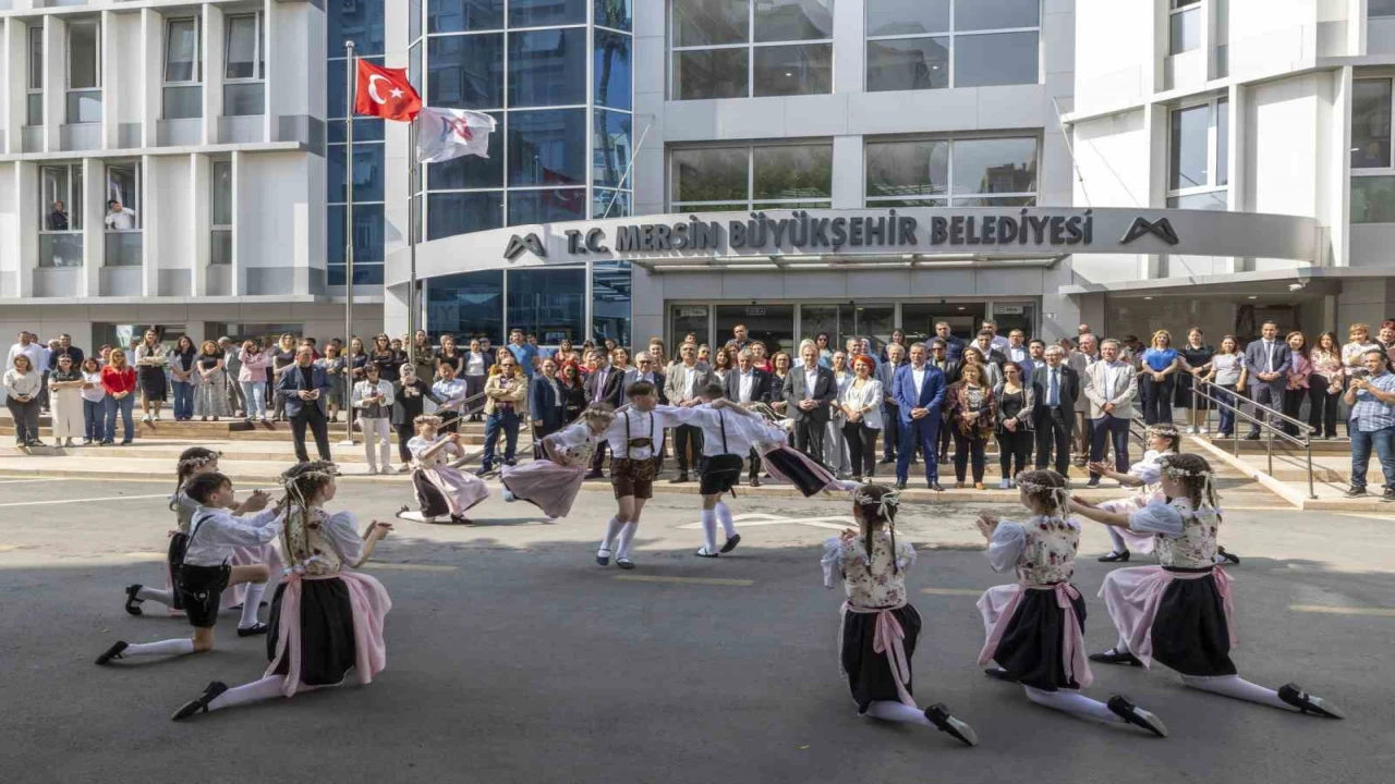 Büyükşehir Belediyesi tarafından düzenlenen ‘2. Uluslararası Mersin Çocuk Festivali’ sürüyor. Festival kapsamında Almanya’nın Berlin kentinden gelen ‘Neuenhagen Bei Çocuk ve Gençlik Dans Topluluğu’, Başkan Vahap Seçer’i belediye hizmet binası önünde gerçekleştirdiği dans gösterisiyle karşıladı. Gösteriyi ilgiyle izleyen Başkan Seçer, çocukların neşesine ortak oldu. Dans gösterisinin ardından, Türkiye’nin farklı illerinden ve farklı ülkelerden Mersin’e gelen öğrenciler Başkan Seçer’i ziyaret etti. Ziyarette, Adıyaman, Edirne, Adana ve Ankara’nın yanı sıra Kuzey Kıbrıs Türk Cumhuriyeti, Almanya, Kuzey Makedonya, Kazakistan, Arnavutluk, Gürcistan, İran, Kosova ve Polonya’dan öğrenciler ve ekip liderleri yer aldı. ‘Hello Mersin’ kursiyerleri de ziyarette yurt dışından gelen öğrencilere rehberlik etti.