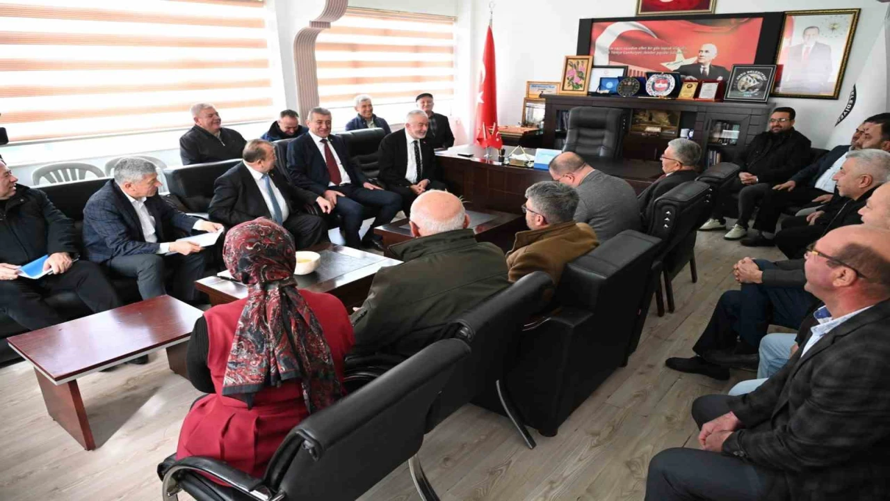 AKSU BELEDİYE BAŞKANI VELİ KAHRAMAN VE İLÇEYE BAĞLI KÖY MUHTARLARI TARAFINDAN KARŞILANAN BAŞKAN BAŞDEĞİRMEN, KÖY MUHTARLARININ TALEPLERİNİ DİNLEDİ.
