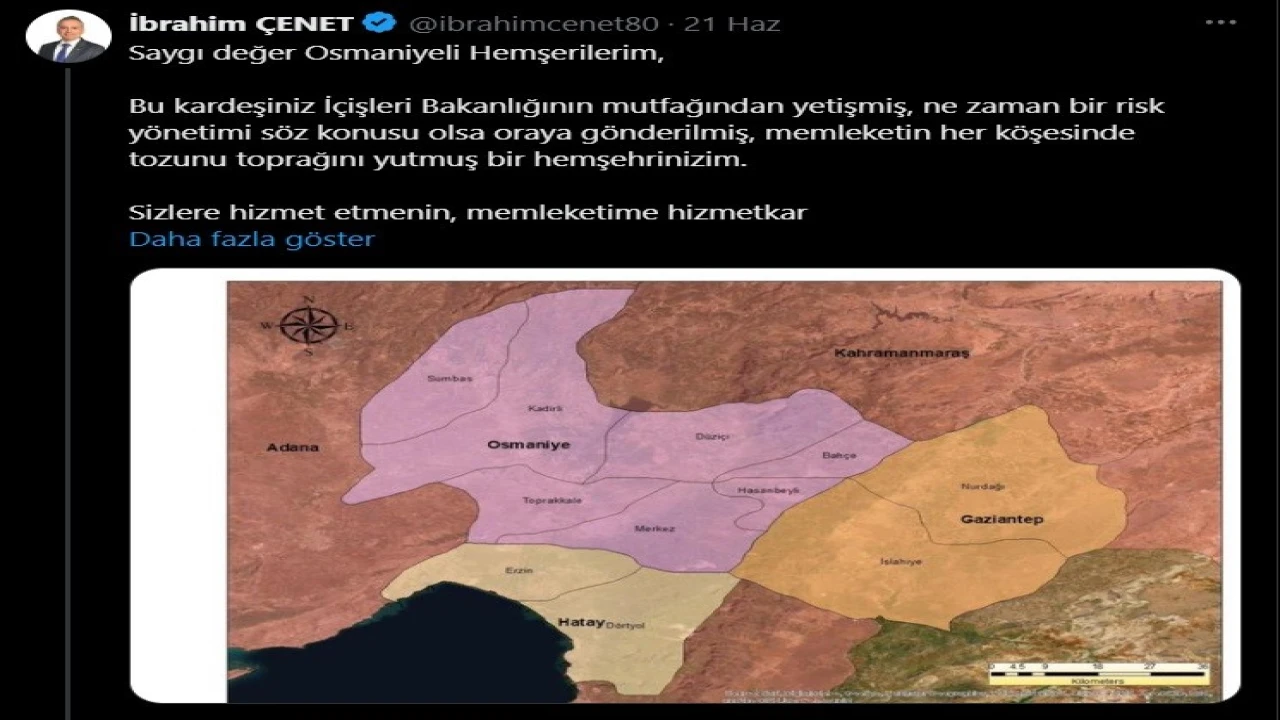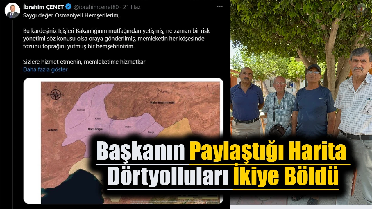 Hatay’ın Dörtyol ve Erzin ilçelerin kapsayan büyükşehir planlama haritasını sosyal medya üzerinden paylaşan Osmaniye Belediye Başkanı İbrahim Çenet’in paylaşımı vatandaşları ikiye böldü.