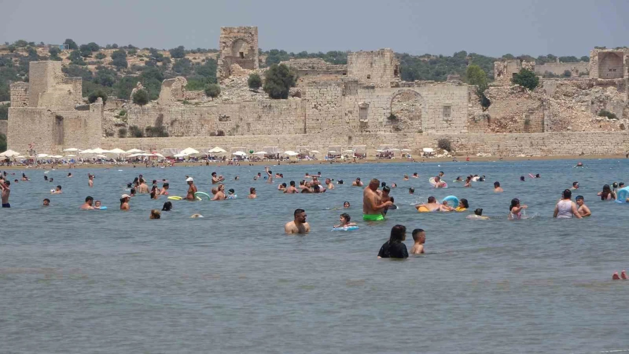 Kurban Bayramı’nın ilk gününde tatili fırsat bilen yüzlerce aile, UNESCO Dünya Kültür Mirası Geçici Listesi’ndeki Kızkalesi’nde denize girerek sezonu açtı.