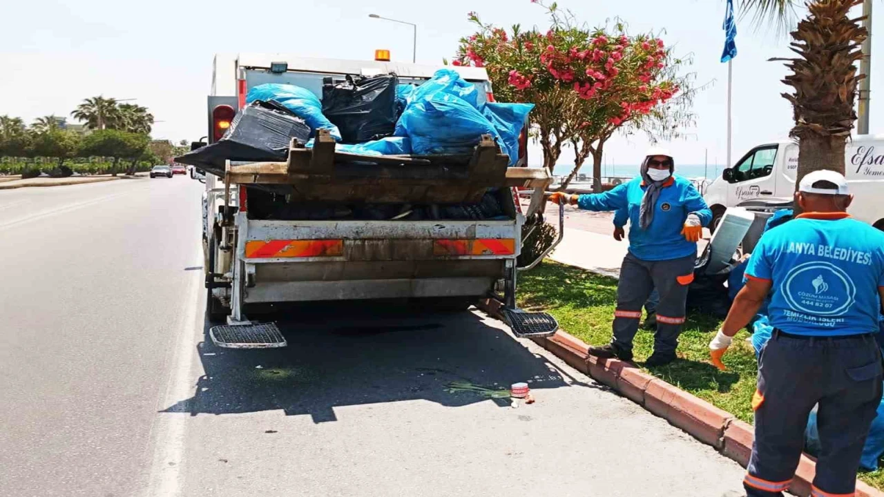 Alanya Belediyesi Temizlik İşleri Müdürlüğü ekipleri, Arefe günü ve 4 günlük bayram tatilinde 4 bin 552 ton evsel, 322 ton 630 kilogram ambalaj atığı olmak üzere toplamda 4 bin 874 ton 630 kilogram atık topladı.