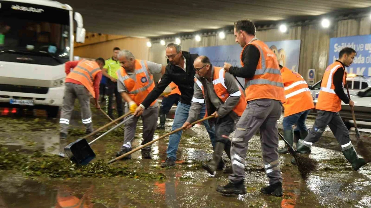 Aniden etkili olan sağanak yağışın ardından Antalya Büyükşehir Belediyesi ASAT Genel Müdürlüğü ekipleri de kısa sürede sahaya indi. Kentin farklı noktalarından gelen ihbarlara hızla müdahale eden ekipler, ana arterler başta olmak üzere dolu yağışı nedeniyle dökülen ve yağmur sularının taşıdığı yaprakların tıkadığı mazgalları temizlendi. Ekiplerinin en yoğun çalışması ise alt geçitlerde oldu. ASAT ekipleri ile Çevre Koruma ve Kontrol Dairesi Başkanlığı ekipleri aşırı yağış nedeniyle polis tarafından trafiğe kapatılan Falez Alt Geçidi’nin trafiğe açılması için temizlik çalışması yaptı. Yoğun bir çalışmayla hızla tamamlanan temizliğin ardından alt geçit kısa süre sonra trafiğe açıldı.