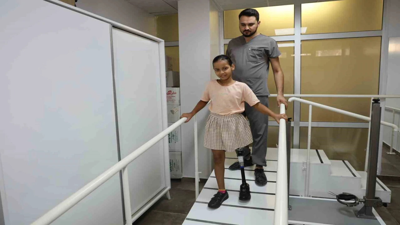 Adana’da Büyükşehir Belediyesi’ne ait yolcu otobüsünün çarpması sonucu 4 sene önce sol bacağını kaybeden 10 yaşındaki Rukiye Emine Kaplan’a protez bacak takıldı. Rukiye Emine, ilk adımlarını parka giderek attı.