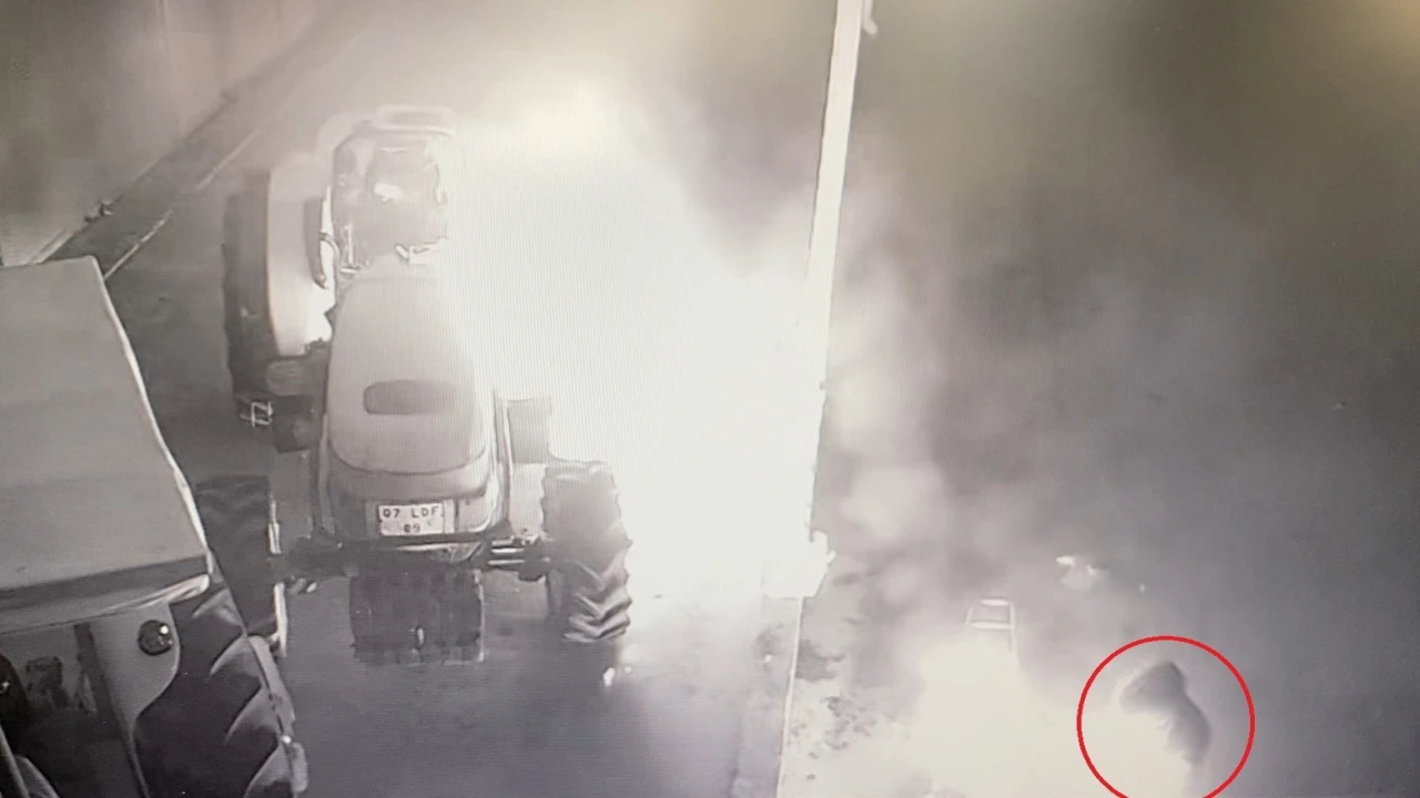 ANTALYA’DA GECE SAATLERİNDE MOTOSİKLETİYLE KİMLİĞİ BELİRSİZ BİR KİŞİ PARK HALİNDEKİ TRAKTÖRE BENZİN DÖKÜP ATEŞE VERDİ. BU SIRADA KENDİSİNİN ÜZERİNE VE MOTOSİKLETİNE DÖKÜLEN BENZİN ALEV ALDI. ÜZERİNDEKİ MONTU ÇIKARTIP YANMAKTAN KURTULAN ŞÜPHELİ, MOTOSİKLETİNİ DE BIRAKIP OLAY YERİNDEN KAÇTI. OLAY ANI GÜVENLİK KAMERASI TARAFINDAN ANBEAN KAYDEDİLDİ.