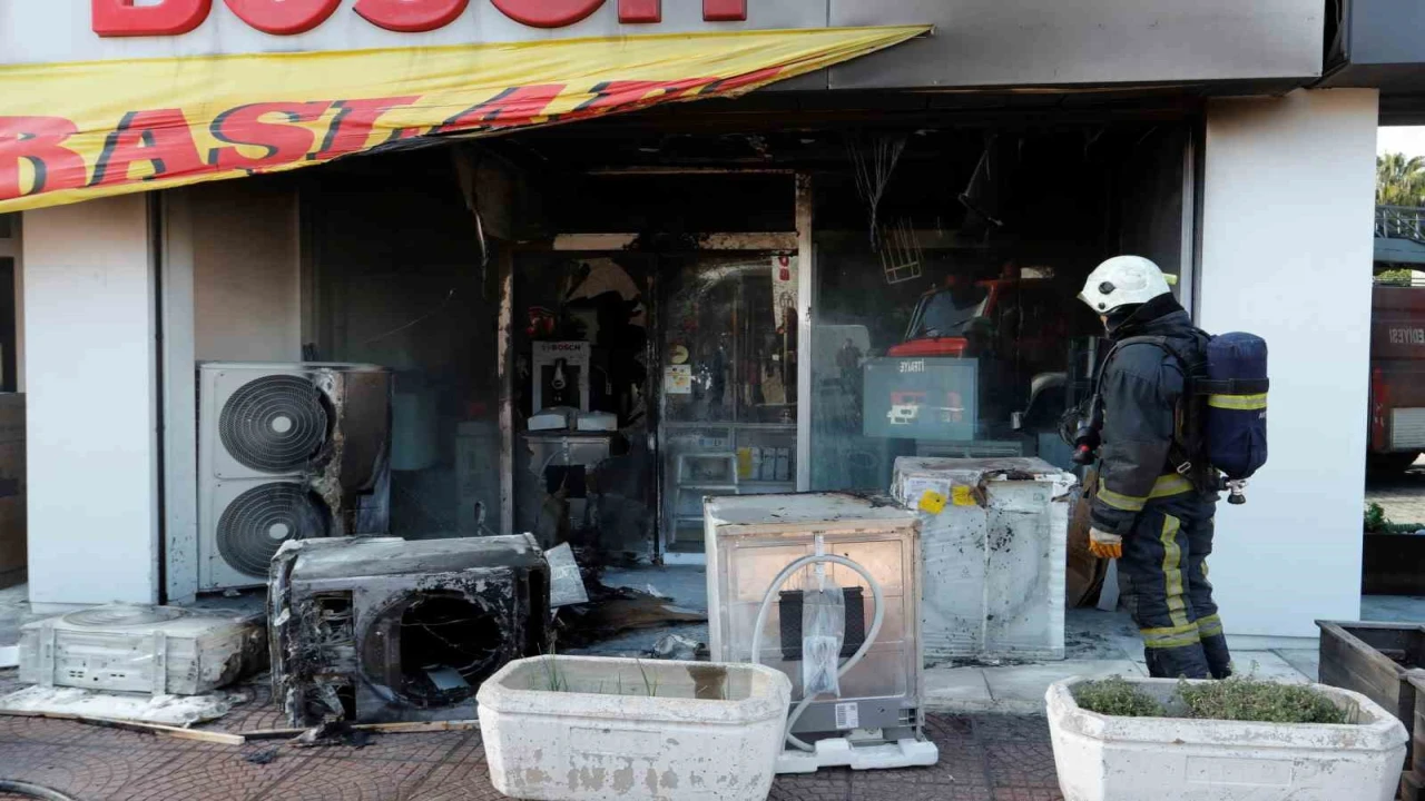 Antalya’da bir beyaz eşya mağazasında klima dış ünitesinden çıkan yangında maddi hasar meydana geldi.