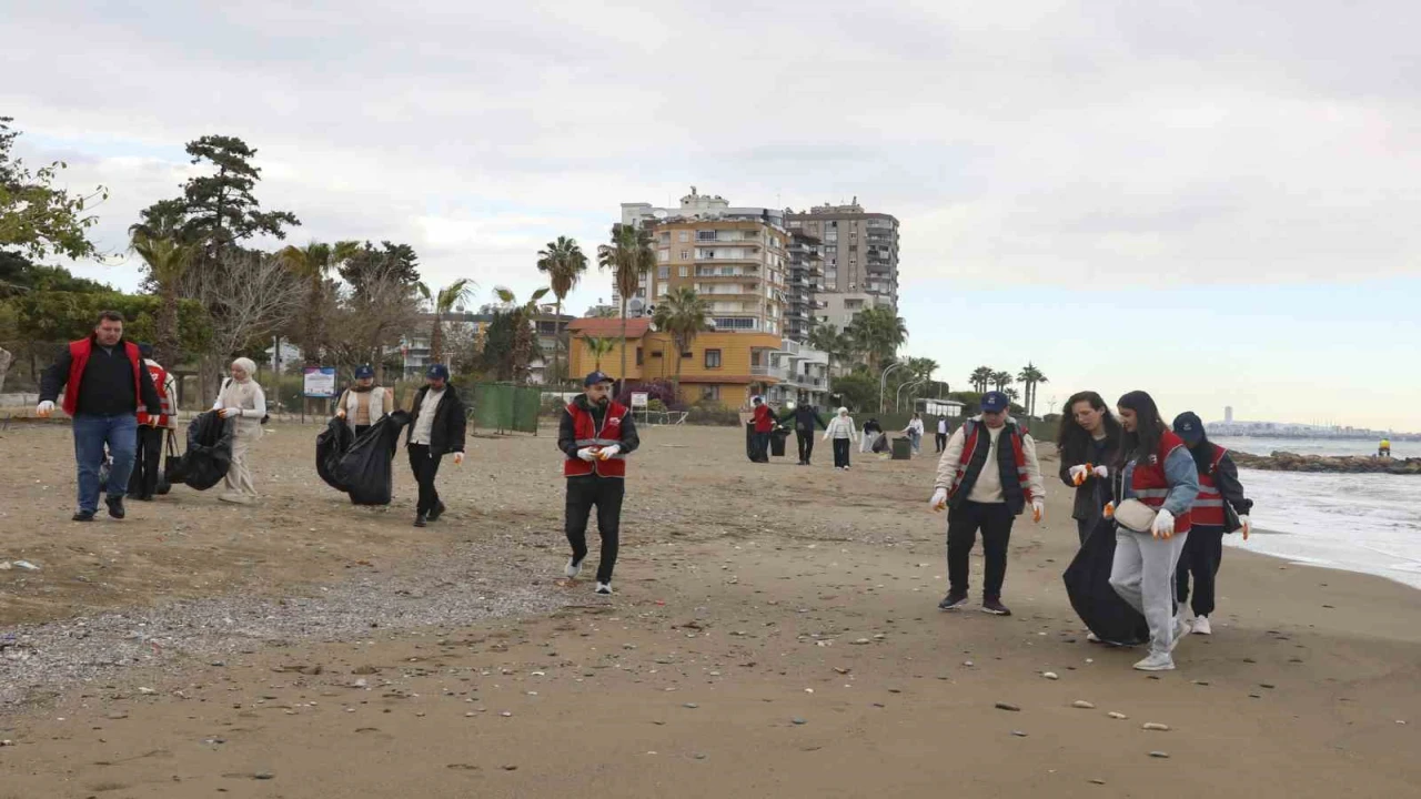 MERSİN BÜYÜKŞEHİR BELEDİYESİNİN GENÇLER ARASINDA ÇEVRE BİLİNCİNİ ARTIRMAK, İKLİM DEĞİŞİKLİĞİ VE ÇEVRE SORUNLARI HAKKINDA FARKINDALIK OLUŞTURMAK AMACIYLA DÜZENLEDİĞİ ETKİNLİĞE KATILAN GENÇLER, MERCAN 100. YIL İKLİM VE ÇEVRE BİLİM MERKEZİ'Nİ GEZEREK, MEZİTLİ İLÇESİ VİRANŞEHİR SAHİLİNDE TEMİZLİK YAPTI.
