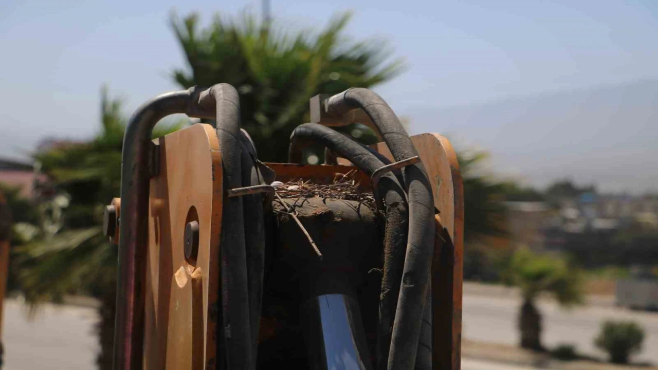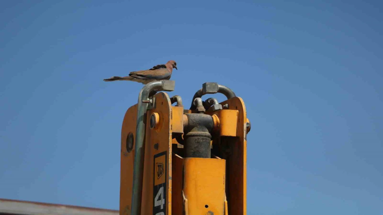 Hatay’da hafriyatçılık yapan Bülent Kuyucu, kepçesinin bomunun üzerine yuva yapan kumrunun yuvasını bozmamak için 17 gündür aracını çalıştırmıyor.