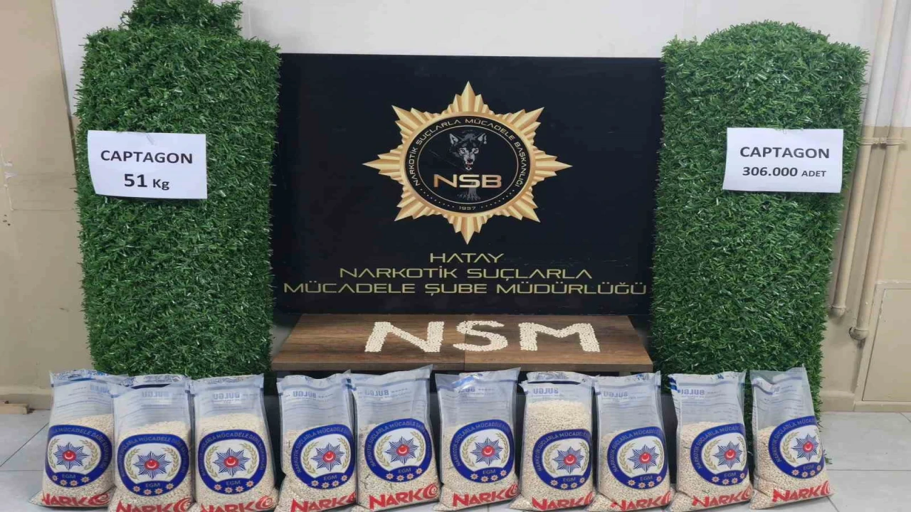 Hatay Emniyet Müdürlüğü görevlilerince uyuşturucu imal ve ticaretine yönelik yapılan çalışmalar aralıksız sürüyor. Yapılan çalışmalar kapsamında Antakya Derince Mahallesi’nde bulunan bir iş yerinde yapılan aramada bahçe çiti yapımında kullanılan suni çimler arasında gizlenmiş halde; 51 Kilogram ağırlığında 306 bin adet captagon hap ele geçirildi. Olayla ilgili olarak adli makamlara sevk edilen H.M. tutuklanarak cezaevine teslim edilirken, B.Y. ile M.E.Ö ise adli kontrol şartıyla serbest bırakıldı. Şahısların uyuşturucu hapları ustaca teker teker yapay çimin içerisine gizlemeleriyse hayrete düşürdü.