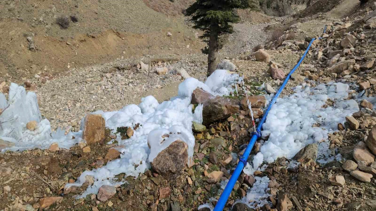 Borudan sızan suyla çam ağacı buzdan ağaca döndü