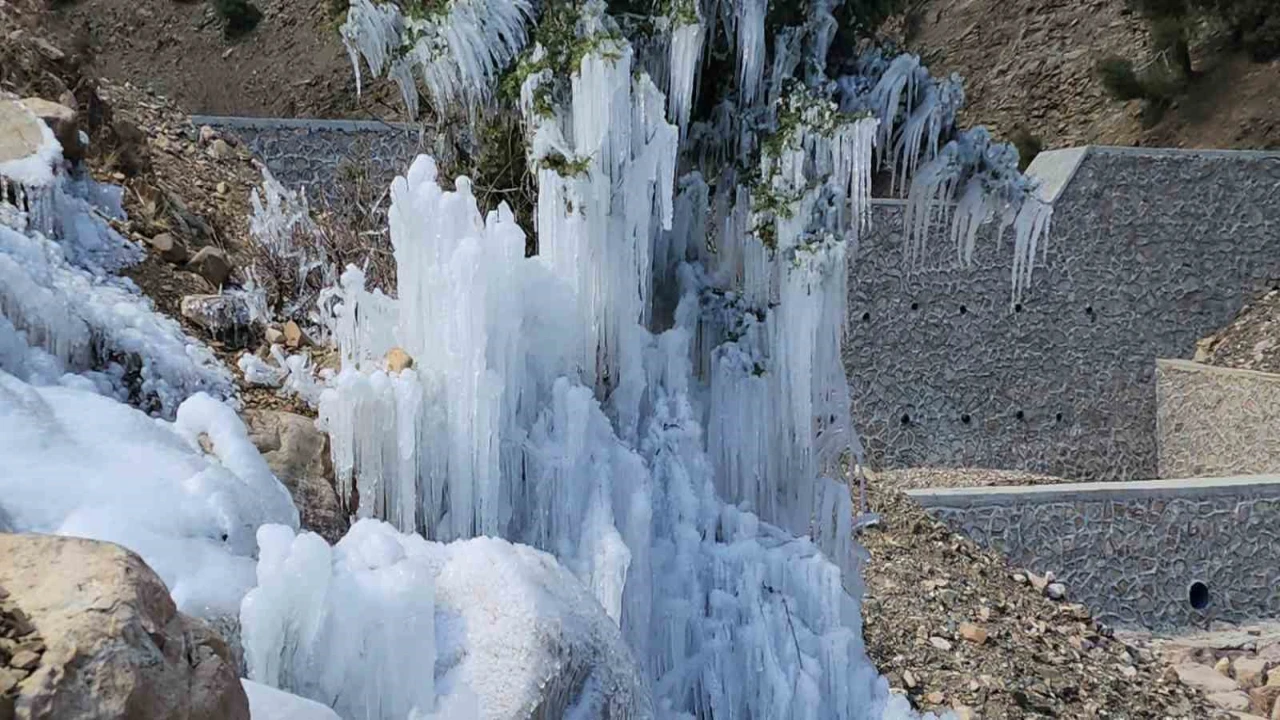 Ülke genelinde etkili olan soğuk hava Hatay’da da etkisini hissettirdi. Gece saatlerinde sıfır derecenin altına düşen soğuk hava, Hassa ilçesi Arpalıuşağı Mahallesi’nde ortaya görsel şölen çıkardı. Mahallenin içme suyu hattından sızan su çam ağacının buzla kaplanmasına neden oldu. Öte yandan mahallede bulunan su kanalları da soğuk havanın etkisiyle dondu.