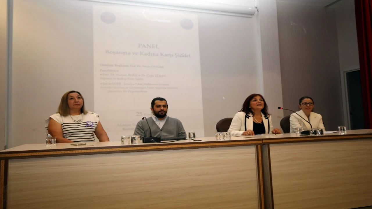 Akdeniz Üniversitesi Edebiyat Fakültesi ve Hukuk Fakültesi iş birliğiyle "Boşanma ve Kadına Karşı Şiddet" başlıklı panel düzenlendi. Rektör Prof. Dr. Özlenen Özkan, şiddetle mücadelede eğitimin kilit rolüne dikkat çekti.