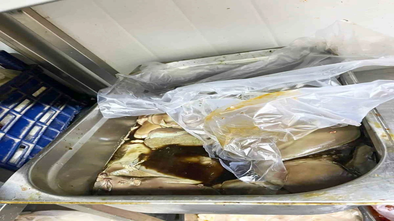 ALANYA BELEDİYESİ ZABITA MÜDÜRLÜĞÜ EKİPLERİ TARAFINDAN BİR RESTORANA YAPILAN DENETİMDE KÜFLENMİŞ, BOZULMUŞ MEZE, ET VE ET ÜRÜNLERİ KULLANILDIĞI TESPİT EDİLDİ. İŞLETME, SÜRESİZ OLARAK MÜHÜRLENDİ.