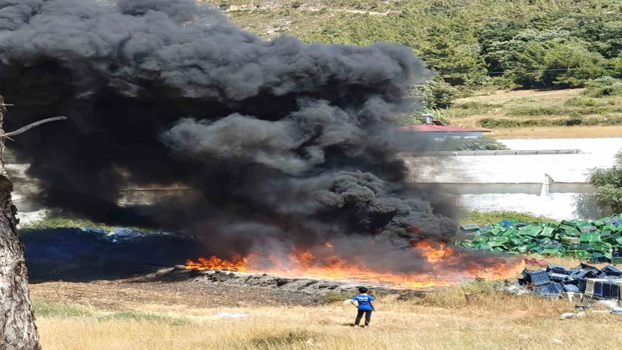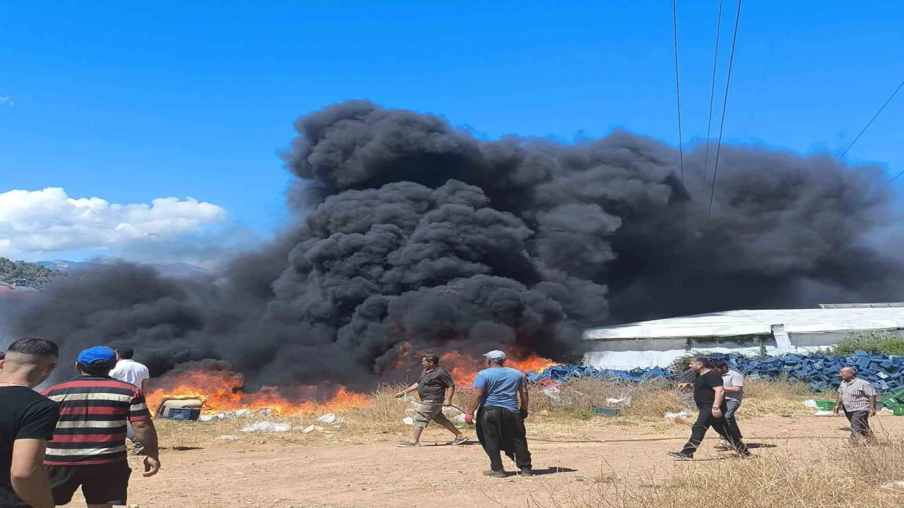 Edinilen bilgiye göre, plastik boş kasaların yer aldığı Tekmen Mahallesi’ndeki bir arazide henüz bilinmeyen bir nedenle başlayan yangın, kısa sürede büyüyerek yoğun is ve kara dumanla mahalle genelini etkisi altına aldı.