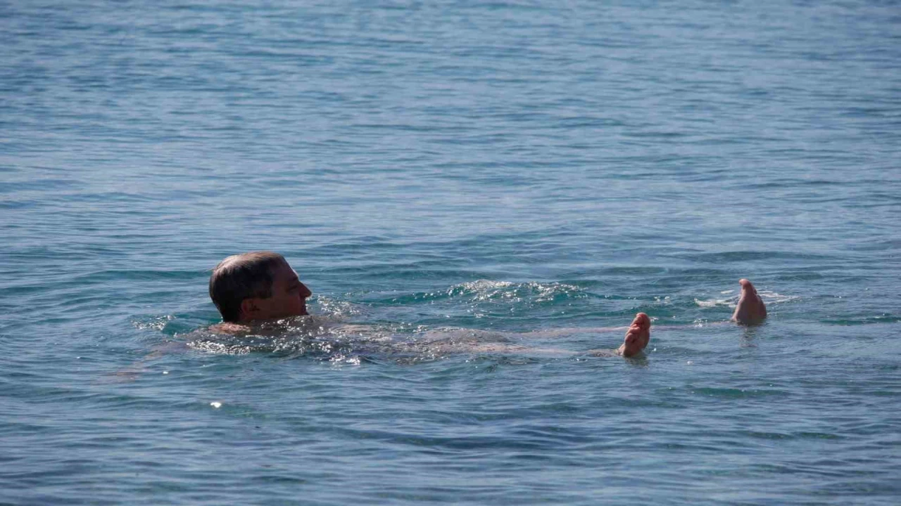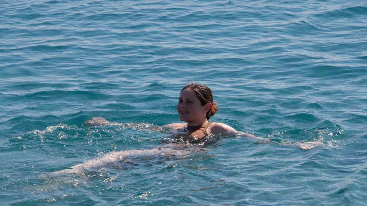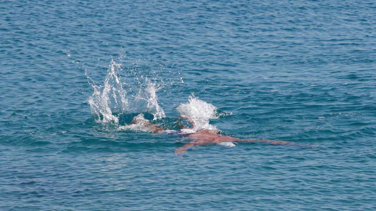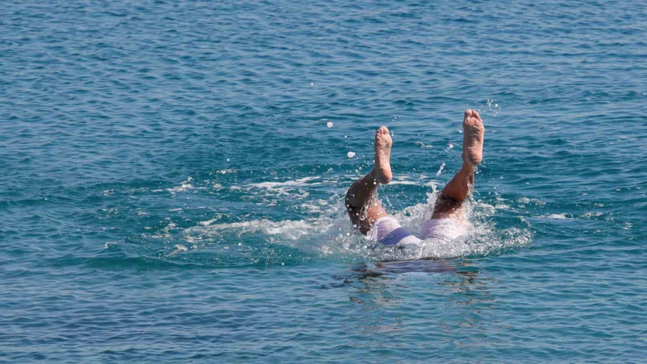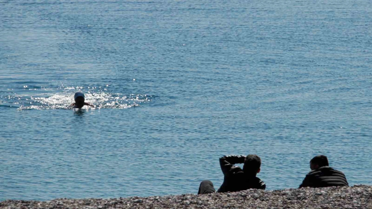 Son iki gündür soğuk hava etkisindeki Antalya’da bazı vatandaşlar ve yabancı turistler ısınmak için sıcaklığı 18 derece olan denize girdi.