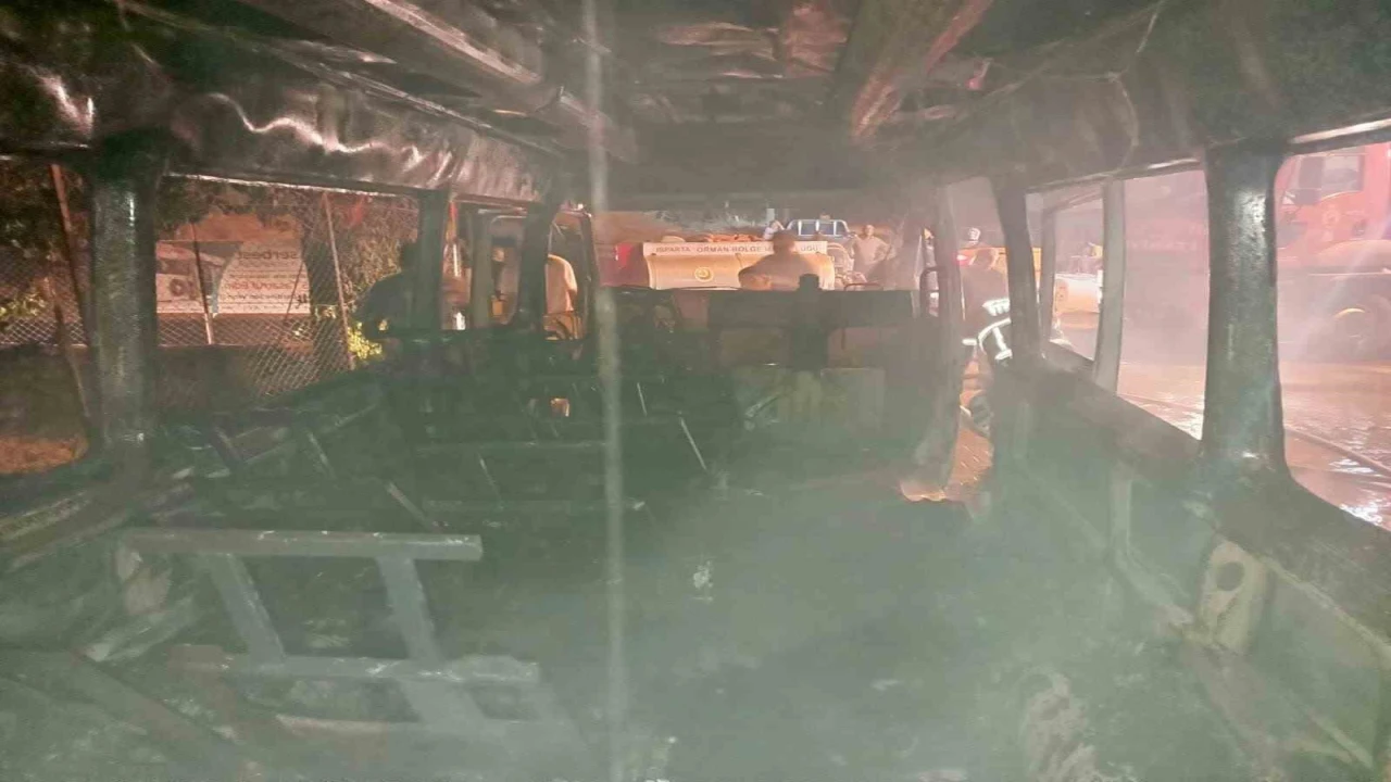 Burdur’un Bucak ilçesine bağlı Çamlık köyünde gece saatlerinde çıkan araç yangınında minibüs tamamen yandı. Yangın, itfaiye ekiplerinin müdahalesiyle söndürüldü.