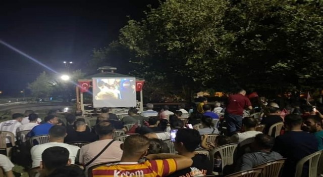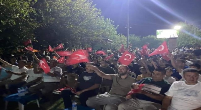 Aydın’ın Bukarkent ilçesinde vatandaşlar Türkiye A Milli Futbol Takımı’nın çeyrek finale yükselme heyecanını 15 Temmuz Millet Bahçesinde kurulan dev ekrandan hep birlikte izledi.