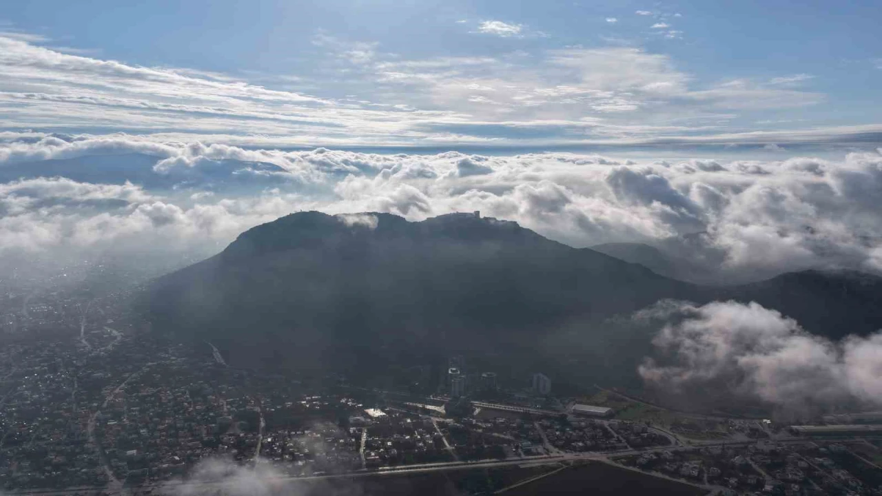 Tarihi yapının zirvesini kaplayan sis ve çevresinde hareket eden bulutların oluşturduğu manzara masalsı görüntüler ortaya çıkardı. Doğa ile tarihin iç içe geçtiği Kozan Kalesi’nin bu etkileyici görüntüsü, hem doğa hem de fotoğraf tutkunlarının ilgisini çekti.