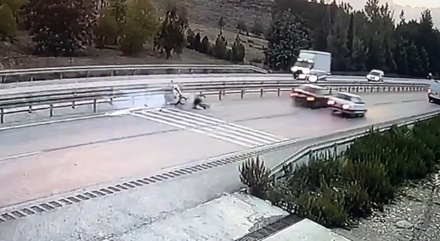 Otomobilin elektrikli motosiklete çarptığı an çevredeki bir iş yerinin güvenlik kamerasına yansırken görüntülerde sol şeritte ilerleyen elektrikli motosiklete arkasından süratli bir şekilde gelen otomobilin çarptığı, çarpmanın etkisiyle devrilen motosikletten düşen sürücünün savrulduğu ve çevredeki vatandaşların sürücüye yardım ederek yol kenarına getirdiği görülüyor.