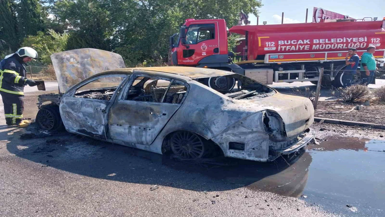 Burdur-Antalya kara yolunda otomobilde çıkan yangına itfaiye ekipleri müdahale ederken, araç kullanılmaz hale geldi.