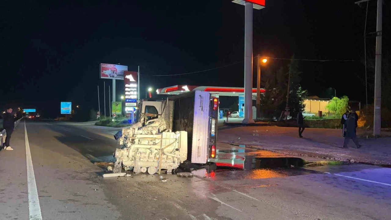 Burdur’un Çeltikçi ilçesinde lastiği patlayan tekne motoru yüklü kamyonet devrildi. Kazada 2 kişi yaralandı.