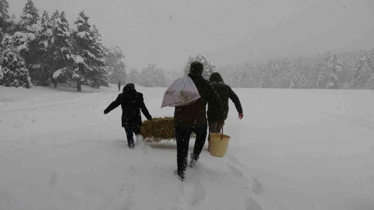 Kar kalınlığının 50 santimetreye ulaştığı yaylada DKMP ekipleri, sadece yem bırakmakla kalmayıp kaçak avcılıkla da mücadele ediyor. Yaz-kış demeden yaban hayatını koruma amacıyla çalışmalara devam eden ekipler, kış boyunca yemleme faaliyetlerini süreceklerini belirtti.