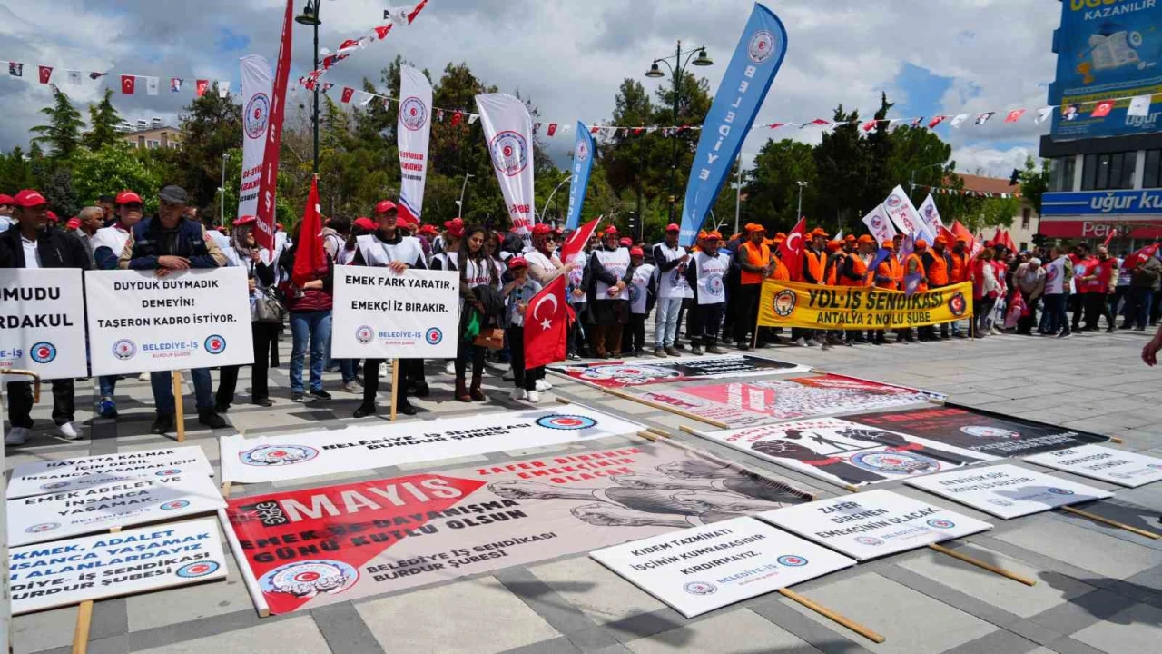 Burdur’da 1 Mayıs Emek ve Dayanışma Günü, yapılan kortej yürüyüşü sonrası halaylar çekilerek kutlandı.