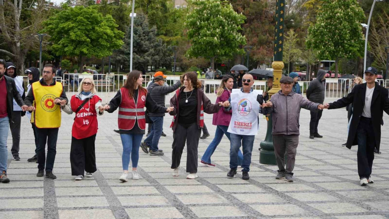 BURDUR’DA 1 MAYIS EMEK VE DAYANIŞMA GÜNÜ, YAPILAN KORTEJ YÜRÜYÜŞÜ SONRASI HALAYLAR ÇEKİLEREK KUTLANDI.