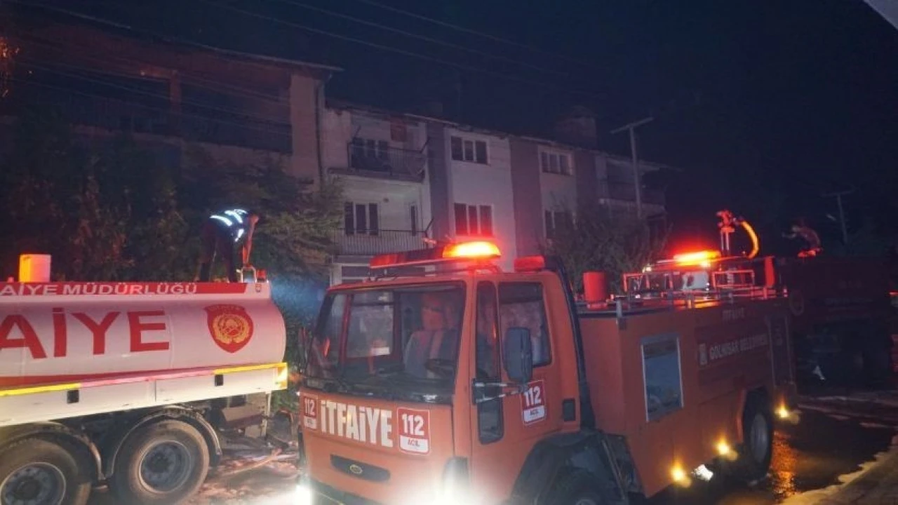 BURDUR'UN GÖLHİSAR İLÇESİNDE 2 KATLI APARTMANIN ÇATISINDA ÇIKAN YANGIN, ALT KATTA SIÇARKEN ÇEVRE İLÇELERDEN DESTEĞE GELEN GELEN İTFAİYE EKİPLERİNİN YARDIMIYLA SÖNDÜRÜLDÜ.