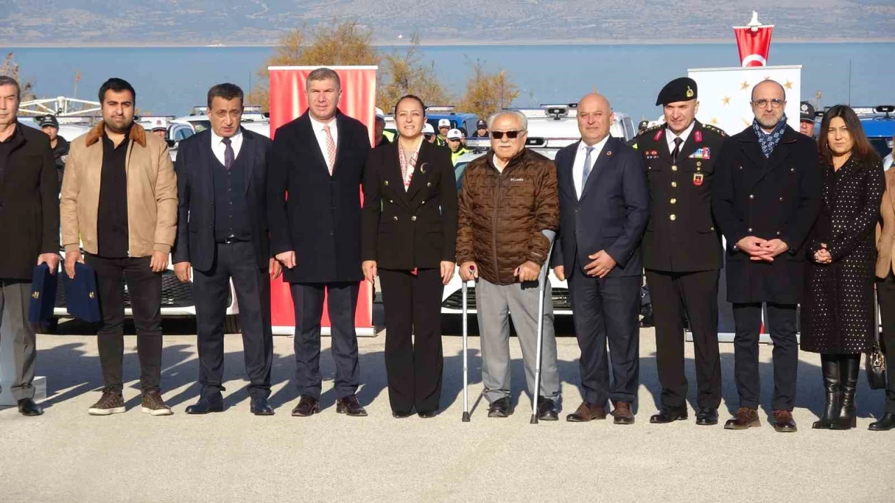 Burdur’da emniyet ve jandarma teşkilatlarına kazandırılan 56 yeni hizmet aracı, Burdur Gölü kıyısında düzenlenen törenle teslim edildi.
