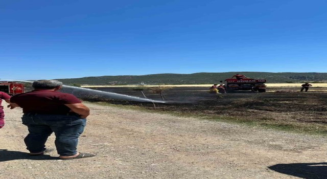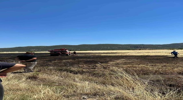 Burdur’un Çeltikçi ilçesinde hasat yapılırken biçerdöverden çıkan kıvılcımların alev alması sonucu 1 dekarlık tarım arazisi yandı.