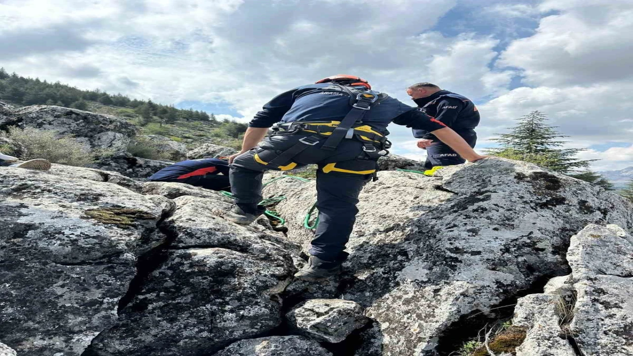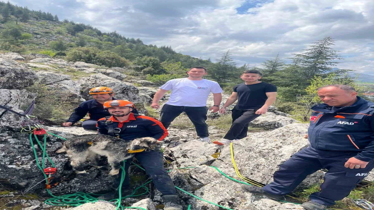 Burdur’un Çatağıl köyünde kayalıklar arasında sıkışan keçi, AFAD ekiplerinin çalışmasıyla kurtarıldı.