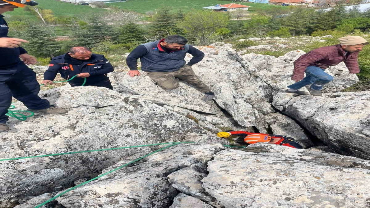 BURDUR’UN ÇATAĞIL KÖYÜNDE KAYALIKLAR ARASINDA SIKIŞAN KEÇİ, AFAD EKİPLERİNİN ÇALIŞMASIYLA KURTARILDI.