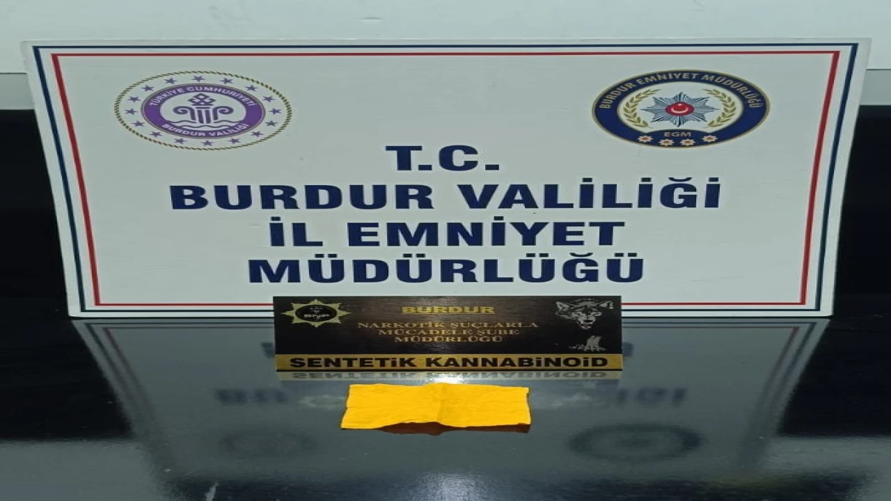 Edinilen bilgiye göre, Burdur İl Emniyet Müdürlüğü Narkotik Suçlarla Mücadele Şube Müdürlüğü ekipleri narkotik suçlarla mücadele çalışmalarına devam ediyor. Bu çerçevesinde, Burdur Cumhuriyet Başsavcılığı koordinesinde; narkotik ekipleri uyuşturucu madde ticareti yapan ve kullanan şahısların yakalanmasına ve deşifresine yönelik çalışmaları neticesinde Ö.Ö. isimli şahısın üzerinde arama yapıldı. Aramada, 320 kullanımlık sentetik kannabinoid enjekte edildiği değerlendirilen kağıt parçası ele geçirildi. "Uyuşturucu veya Uyarıcı Madde İmal ve Ticareti" suçu çerçevesinde gözaltına alınan şüpheli Ö.Ö. çıkarıldığı mahkemece tutuklanarak cezaevine gönderildi.