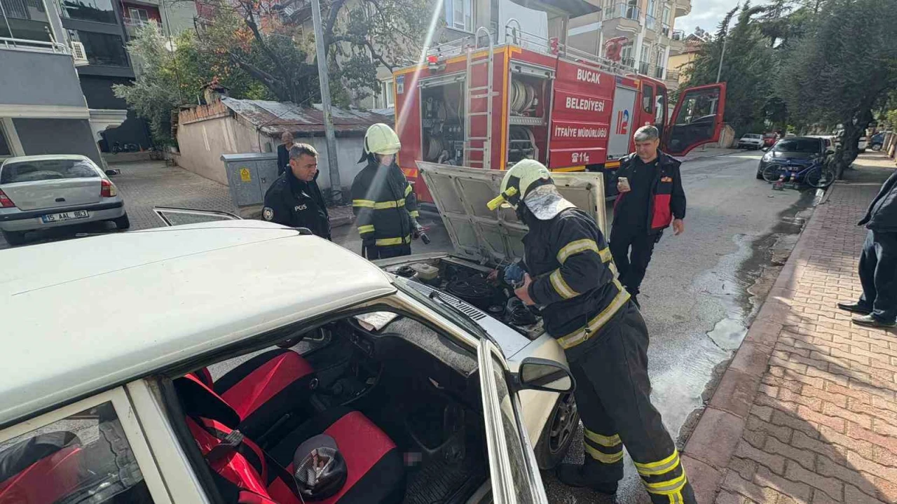 Burdur’un Bucak ilçesinde seyir halindeki bir otomobilde çıkan yangın, itfaiye ekipleri tarafından söndürüldü.