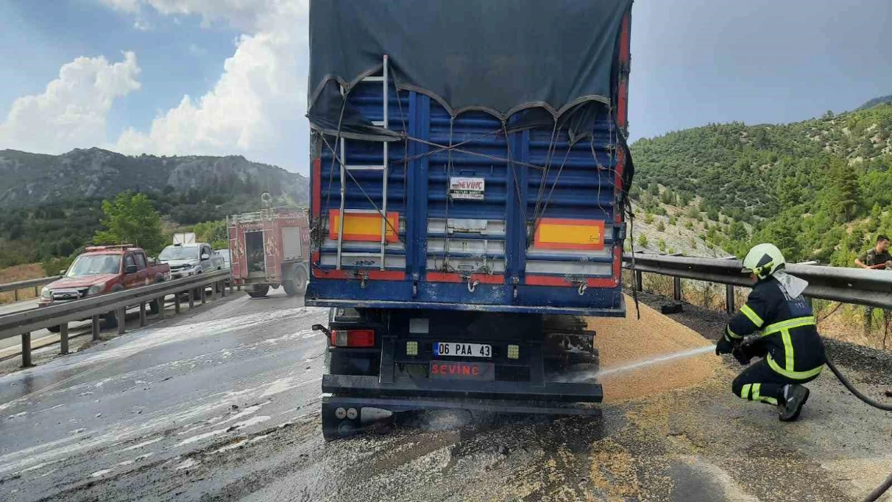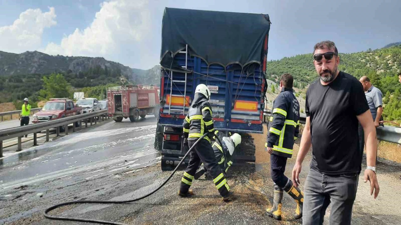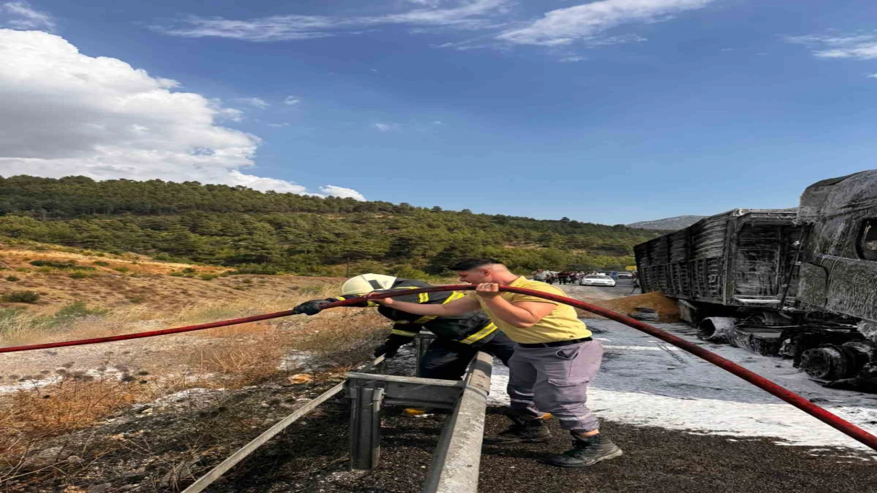 Olay, saat 16.00 sıralarında Burdur’un Çeltikçi ilçesi Tekkeköy mevkisi D-650 kara yolu üzerinde meydana geldi. Edinilen bilgilere göre, Remzi Y. (49) idaresindeki 06 CNU 487 plakalı tırın motor bölümünden bir anda dumanlar yükselmeye başladı. Alevleri fark eden sürücü, aracı emniyet şeridine çekerek itfaiyeyi aradı. İhbar üzerine olay yerine gelen itfaiye ekipleri, tırdaki yangına müdahale ederek alevleri kontrol altına aldı. Tamamen yanan tır kullanılamaz hale gelirken otluk alan sıçrayan alevler de itfaiye ekiplerince kısa sürede söndürüldü. Olayla ilgili inceleme başlatıldı.