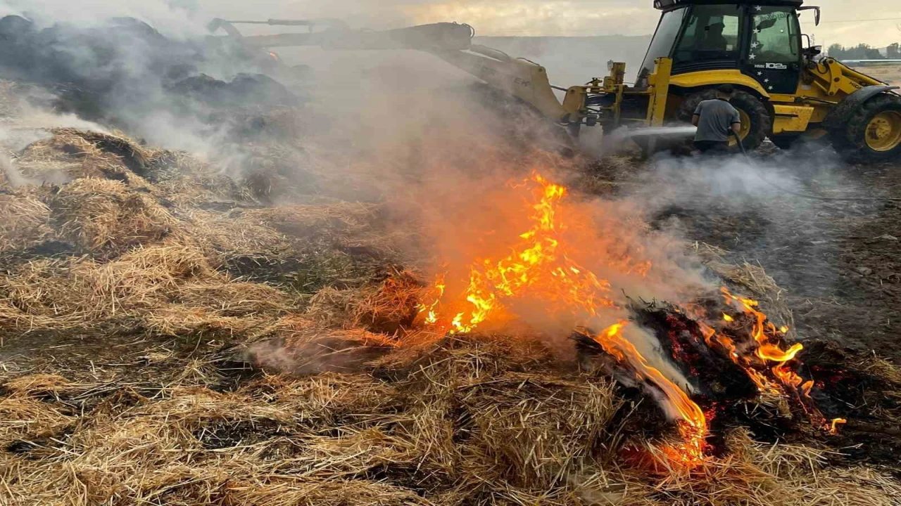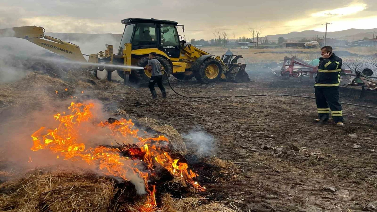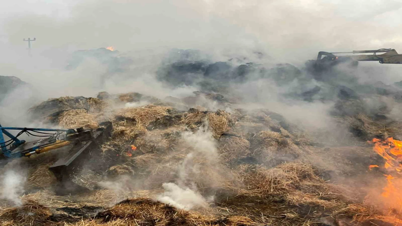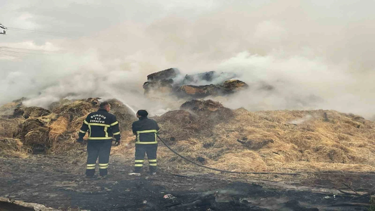 Burdur’da çıkan yangında yaklaşık 2 bin saman balyası yandı.